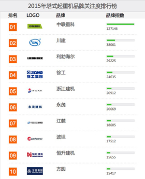 榜单是基于2015年中国路面机械网及安博电子官方网站机械电商网海量用户对其平台内所有塔式起重机品牌、产品的浏览及在线询价次数而生成的。该榜单能在一定程度上体现行业用户对品牌及产品的偏好,同时在一定范围内反映企业品牌和产品在用户群体中的影响力和覆盖程度。