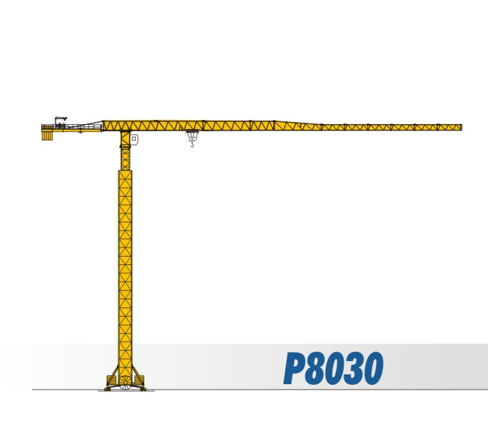 臂长组合:80m 75m 70m 65m 60m 55m 50m 端部吊重:1.7t(80m)/3.0t(80m) 最大吊重:25t(13.9m)