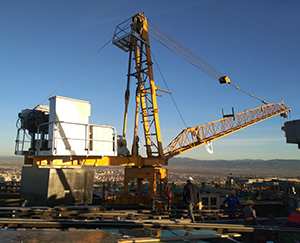 为了方便拆卸内爬塔机,我公司自行设计研发出了屋面吊,目前有8t、10t两种型号。选用屋面吊来进行内爬塔机的拆卸式一个经济合理的方案,它与传统的拆塔机方法相比,具有施工方便、施工工艺简单、造价低、便于操作、安全可靠等优点。