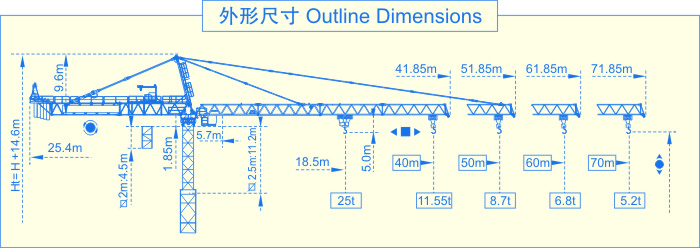 SCM-C7052塔式起重机是我公司自行设计制造的大型上回转、自升式塔式起重机。该机型设计新颖,塔身为片式结构,装拆方便;起升机构、回转机构、变幅机构、行走机构、顶升机构等均采用国外技术,性能先进可靠。 该机具有轨道行走式、固定附着式两种使用类型,且标准节有两种形式,最大起重量25t,2.5m断面标准节附着式最大起升高度262.61m,2m为内爬机型。