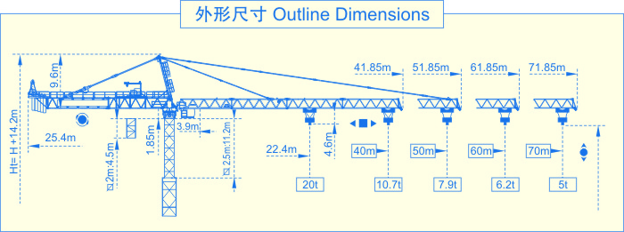 SCM-C7050塔式起重机是我公司吸收法国POTAIN公司塔机技术,设计制造的大型上回转自升式塔式起重机。该机型设计新颖,塔身为片式结构,装拆方便;起升、回转、变幅、行走、顶升等机构均采用国外技术,性能先进可靠。 该机具有轨道行走式、固定式、附着式和内爬式多种使用类型。最大起重量20t。本公司加工设备精良、质量管理严格、整机质量上乘,欢迎广大用户选用。
