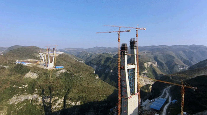 六广河特大桥是息黔高速公路最为重要,同时也是施工难度最大的控制性安博电子官方网站,两侧桥墩高度均为242米,每个桥墩的起重机械配置均为安博电子(中国)生产的两台C7030塔机和两台SC200/200WPZ中速变频施工梯。